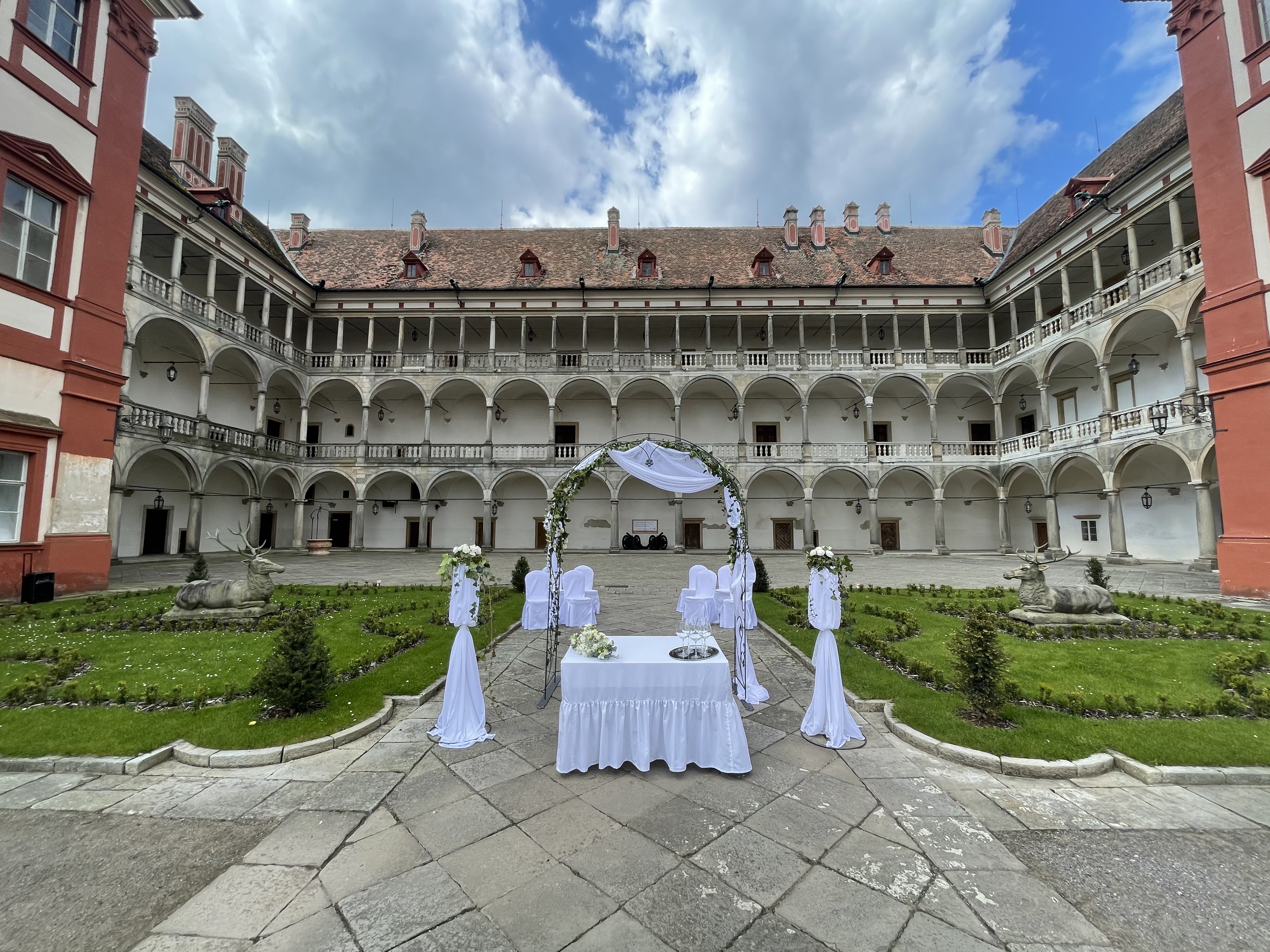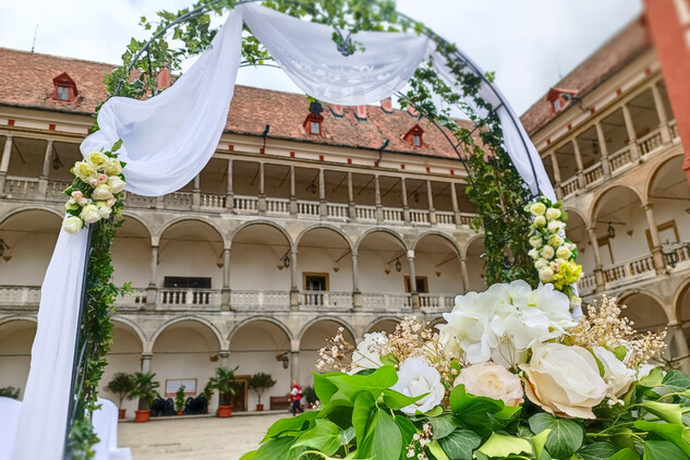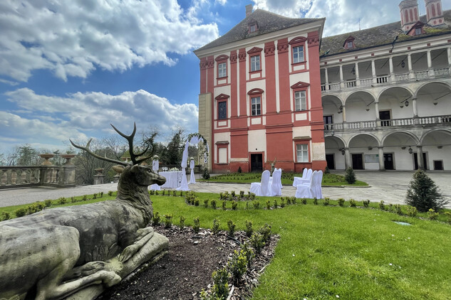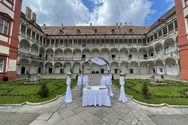 Krásné, romantické prostředí zámeckých nádvoří nabízí svatebčanům prožít nevšední "open air" zážitek.