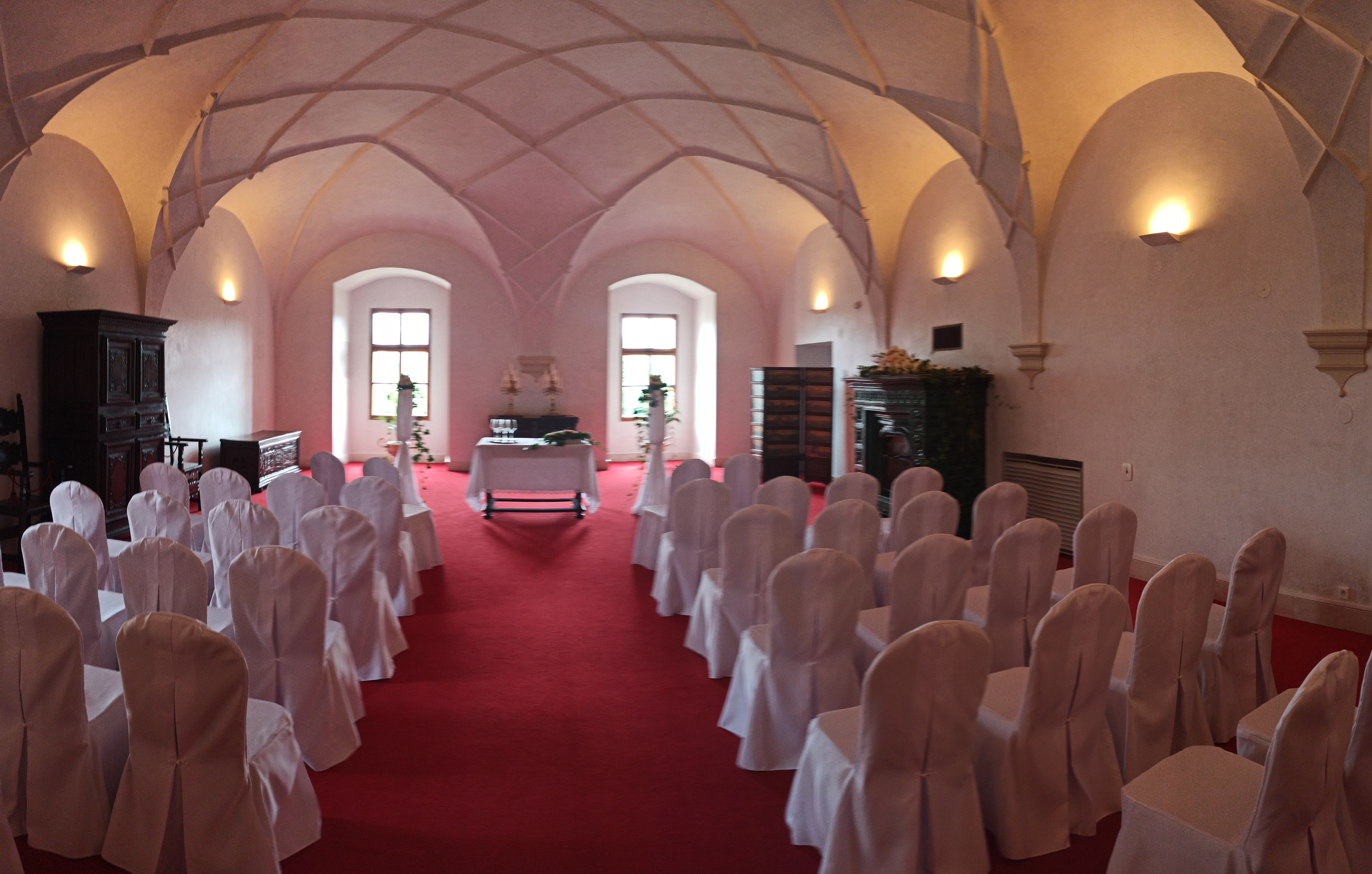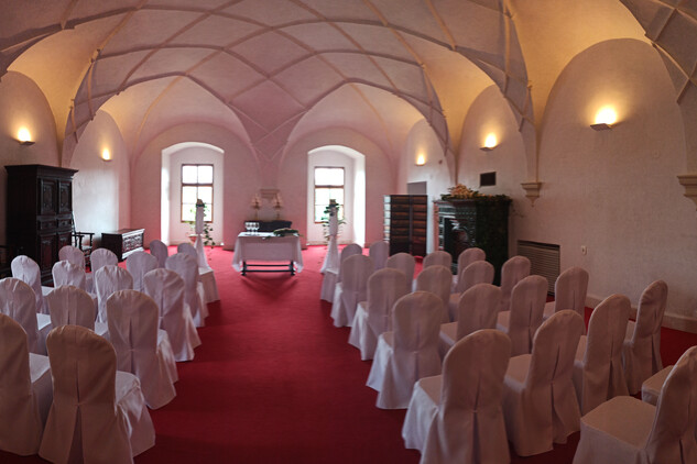 Kapacita: 50 osob (včetně oddávajícího a matrikářky), počet míst k sezení: 16