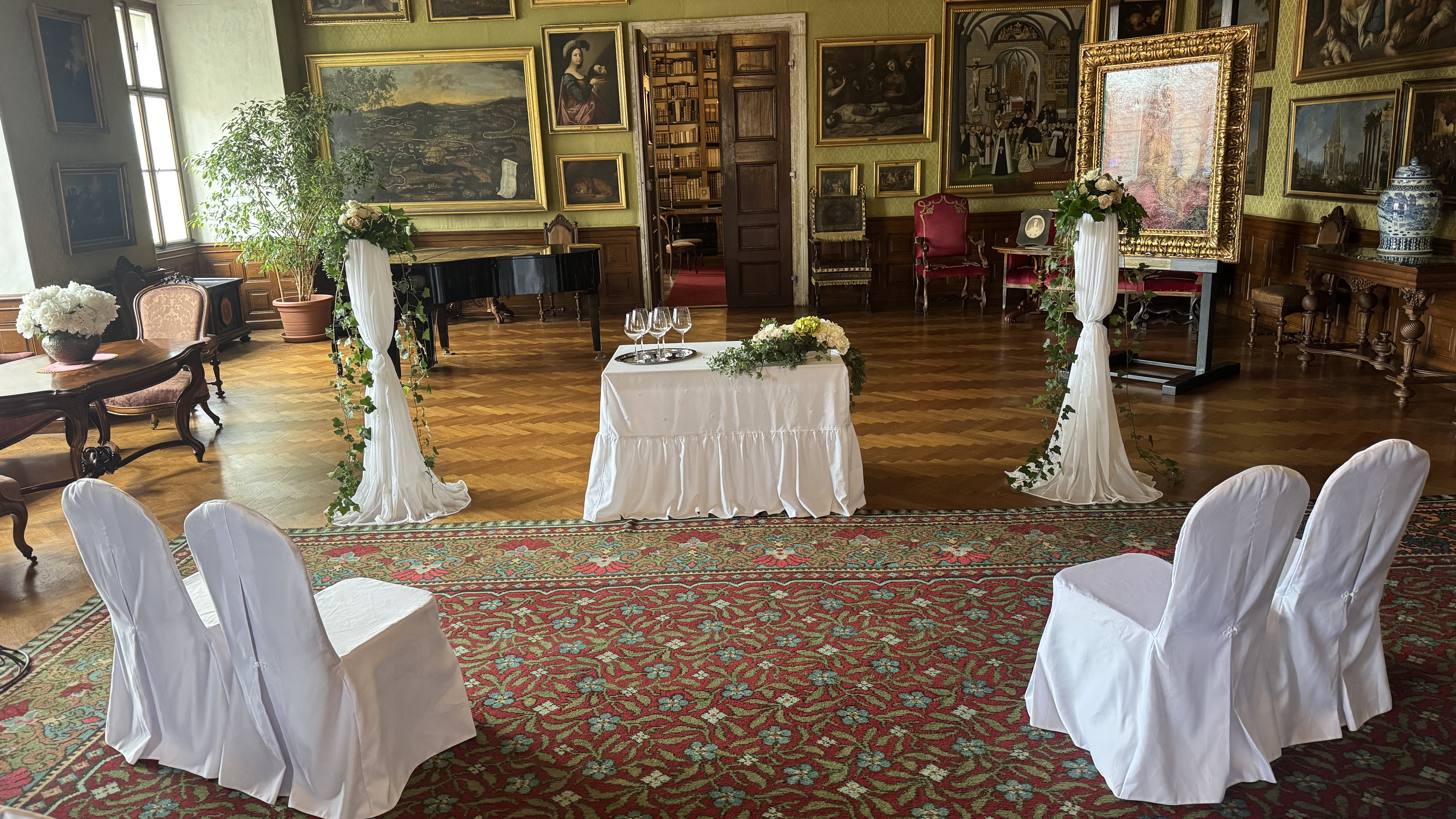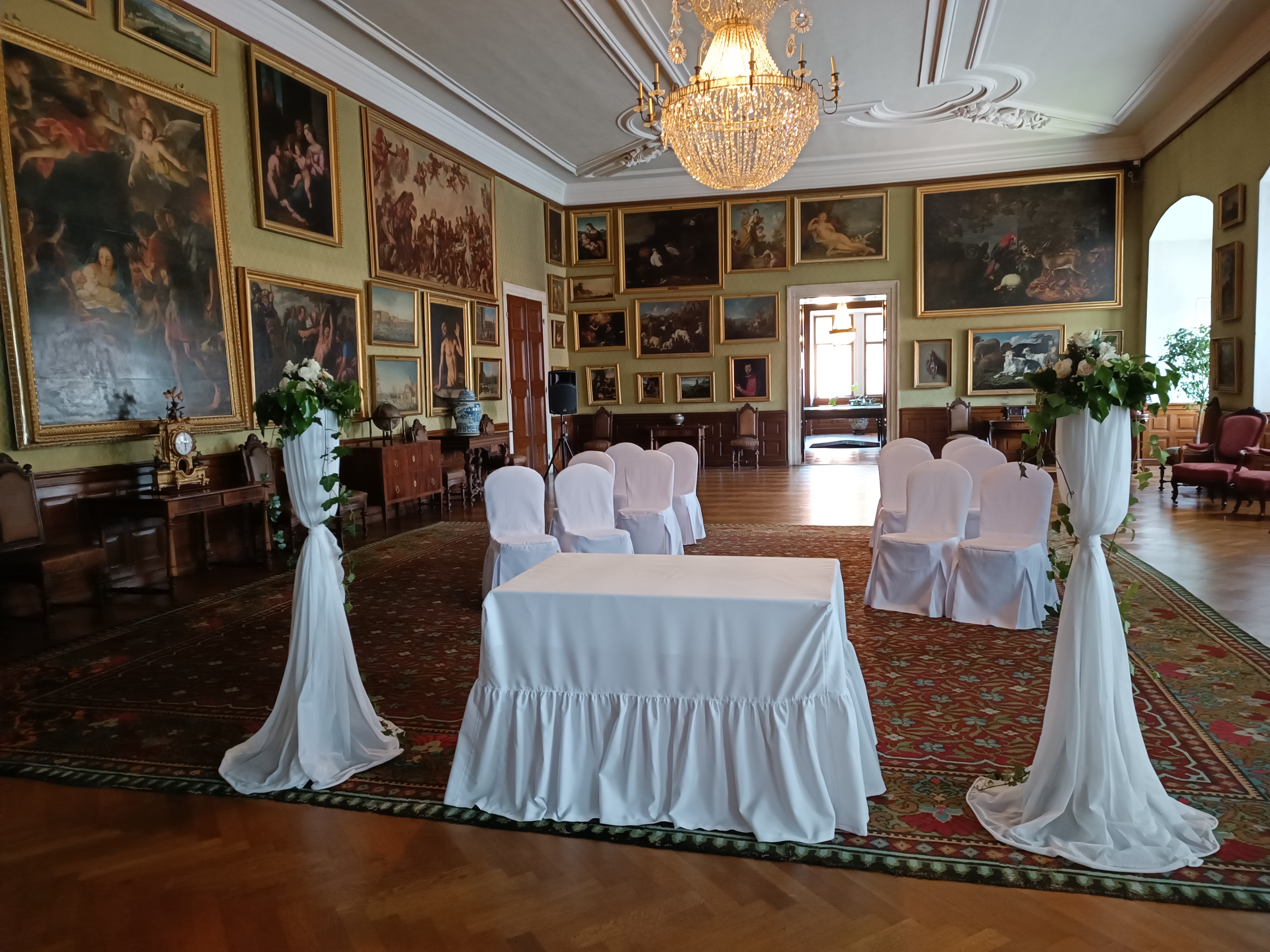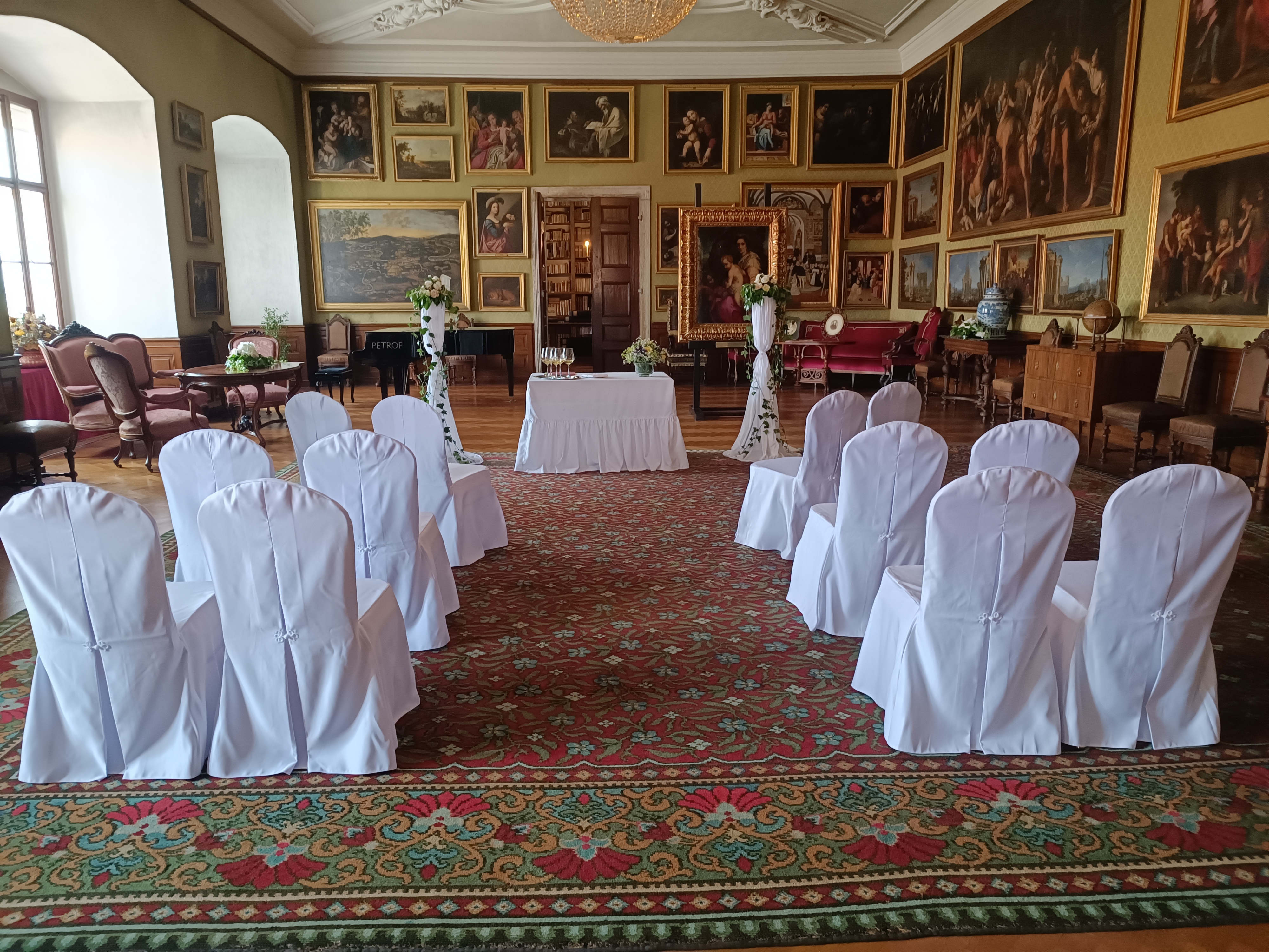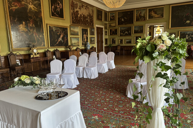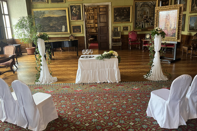(Velkou zámeckou obrazárnu si je možné pronajmout nejen za účelem svatebního obřadu, ale i pro koncertní vystoupení.)